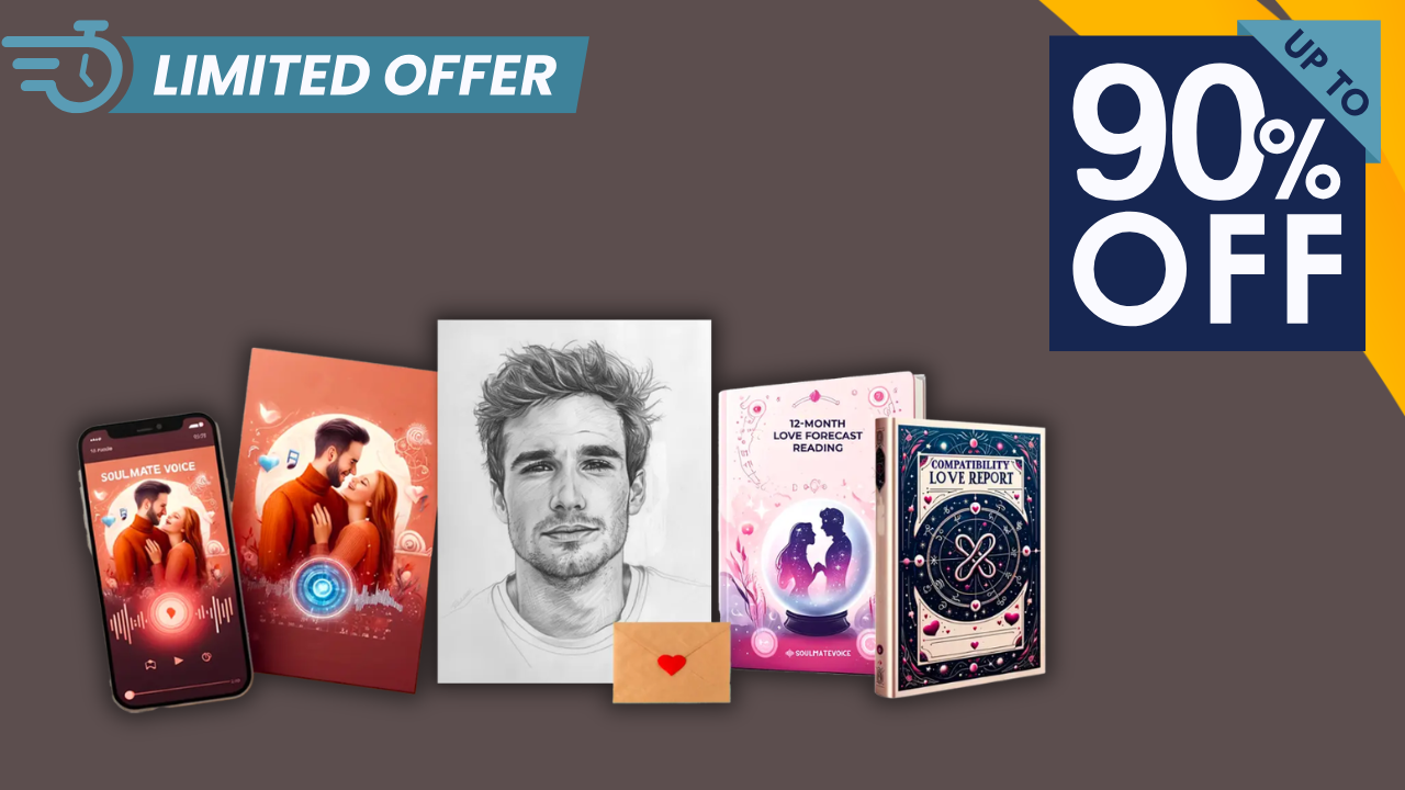 📦 What You Get: Digital soulmate sketch, personalized voice profile, 12-month love forecast, zodiac compatibility insights, Divine Love Calendar